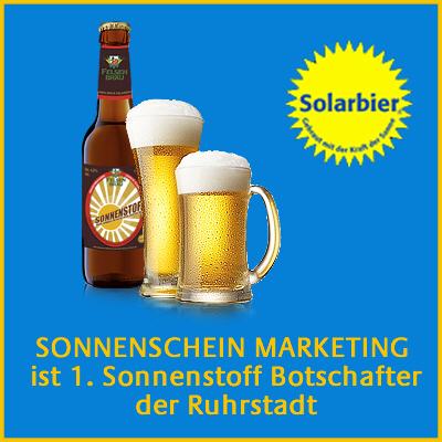 SONNENSCHEIN MARKETING unterstützt die 1. Solarbier-Brauerei Deutschlands und wird 1. Sonnenstoff-Botschafter der Ruhrstadt.
